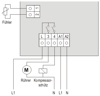 Das Gerät dient zur Steuerung von Rührwerksmotoren und Kältemaschinen in Milchkühlanlagen. |