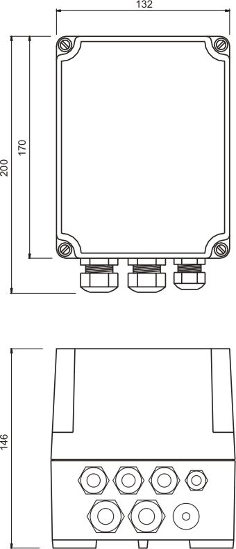 Gehäuse für Wandmontage WMG sind mit 4 Befestigungsbohrungen (ø 4 mm) versehen.