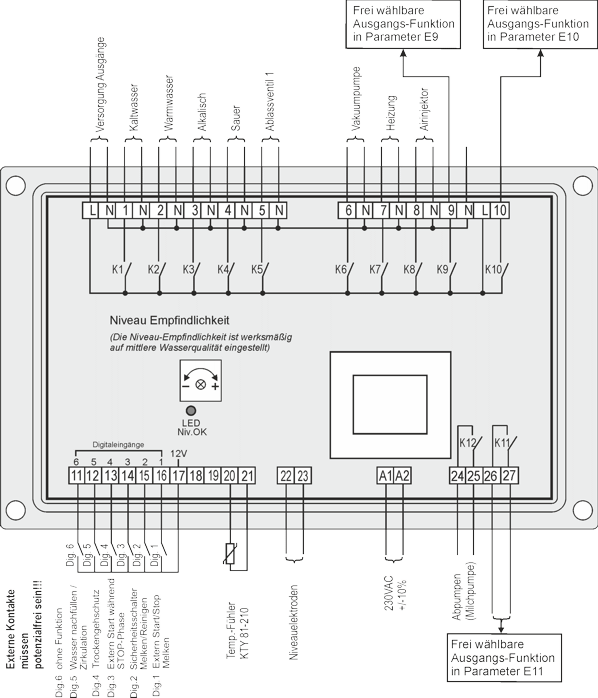 Das Gerät übernimmt die Ansteuerung aller Anlagenkomponenten über ein flexibel programmierbares und einfach zu bedienendes Reinigungsprogramm.