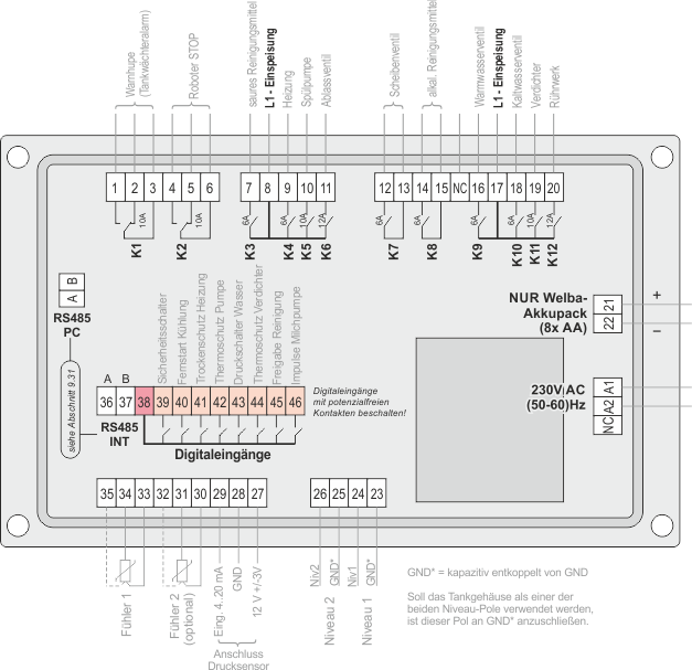 Je nach Ausführung sind die erforderlichen Zusatzbausteine für die Tankwächterfunktion bereits integriert. |