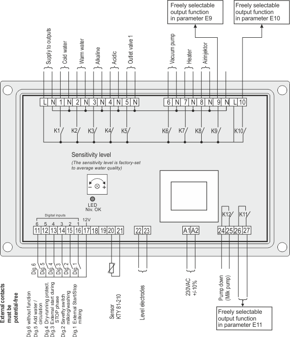 The device controls all plant components through a flexibly programmable and easy-to-operate cleaning programme.