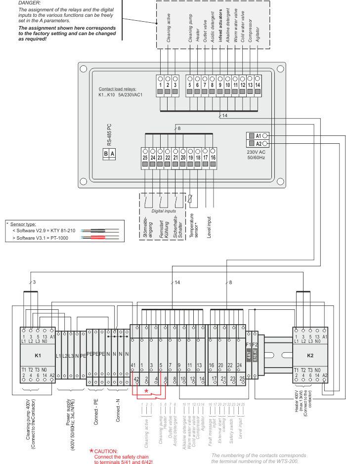 The universal cooling-tank control unit is also available pre-installed in a sturdy switchbox (IP65) for wall mounting. All necessary contactors for washing pump and heater are already built in and fully wired.